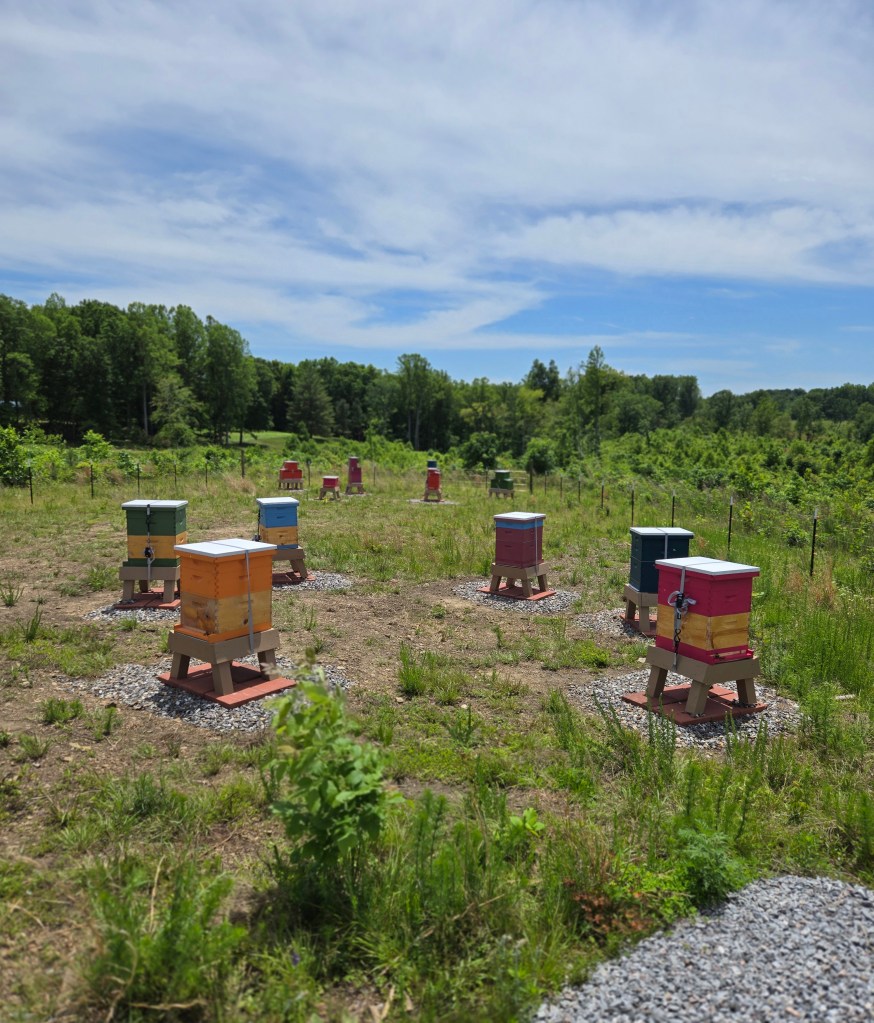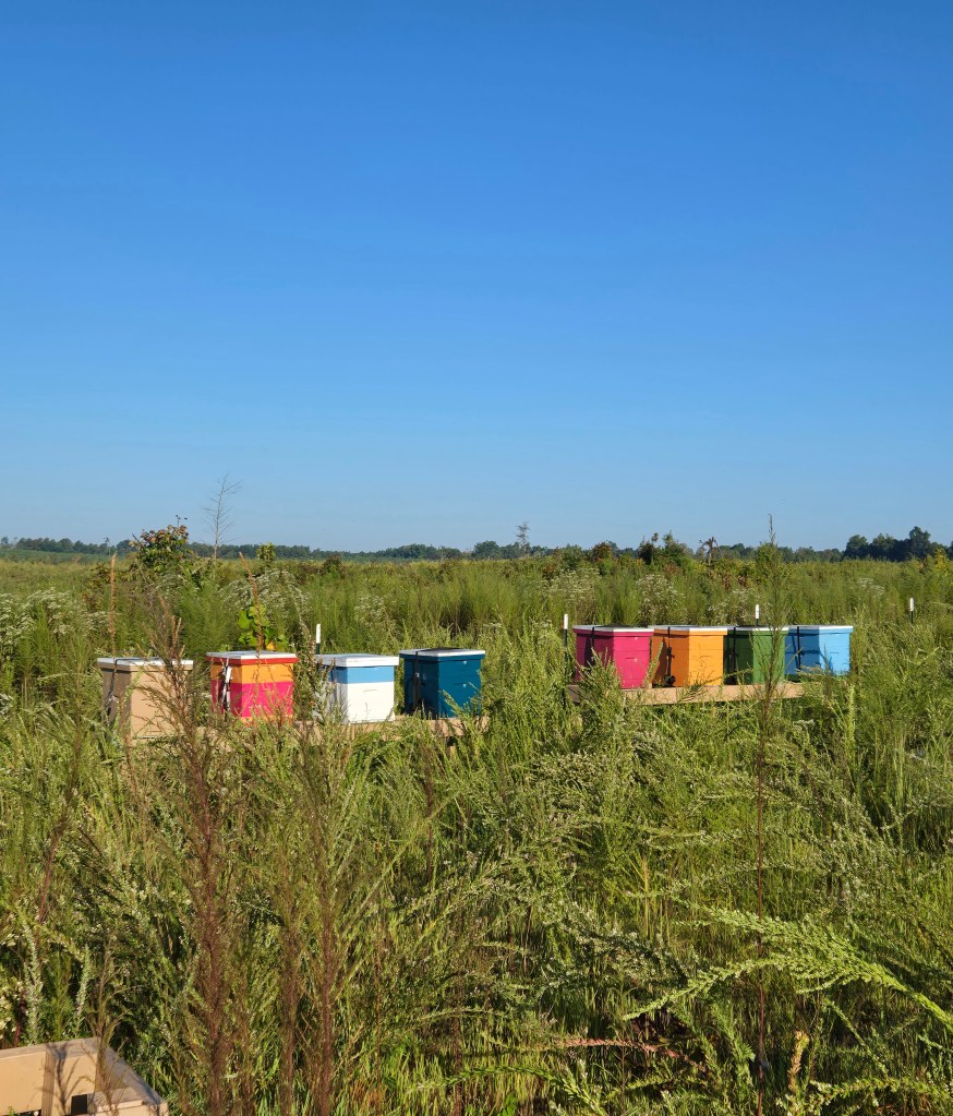 Our journey began in the early 2020s with a vision to transform acres of clear-cut land into a high-functioning ecosystem. Today, our nature metropolis is anchored by our red barn which is a hub of apicultural research and a home to resilient honeybee colonies bred for health and productivity.